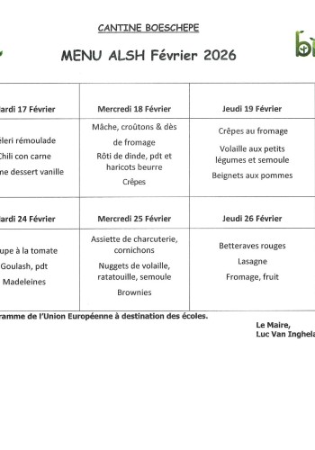 Menu ALSH FEVRIER 2026