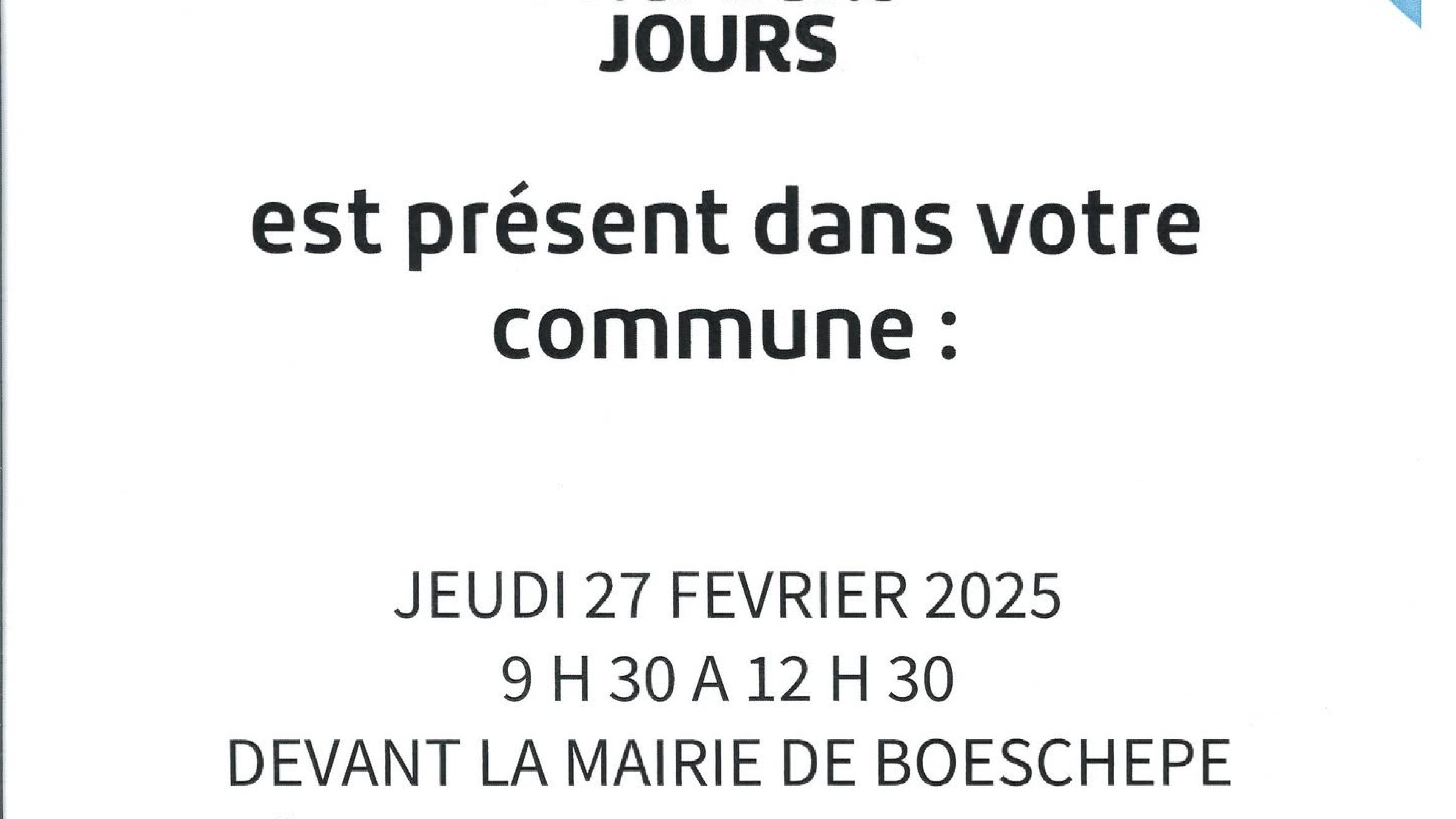 Dans notre commune le jeudi 27 février 2025 de 9h30 à 12h30