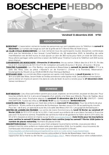 Communiqué hebdo n°50 communique_numero_50.pdf Consult Size : 149.58 KB File extension : pdf Published at 12 Dec. 2025
