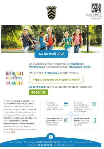 Les inscriptions aux services périscolaires se feront désormais sur l'application MyPérischool en remplacement de "Mon Espace Famille" dès le mardi 3 mars